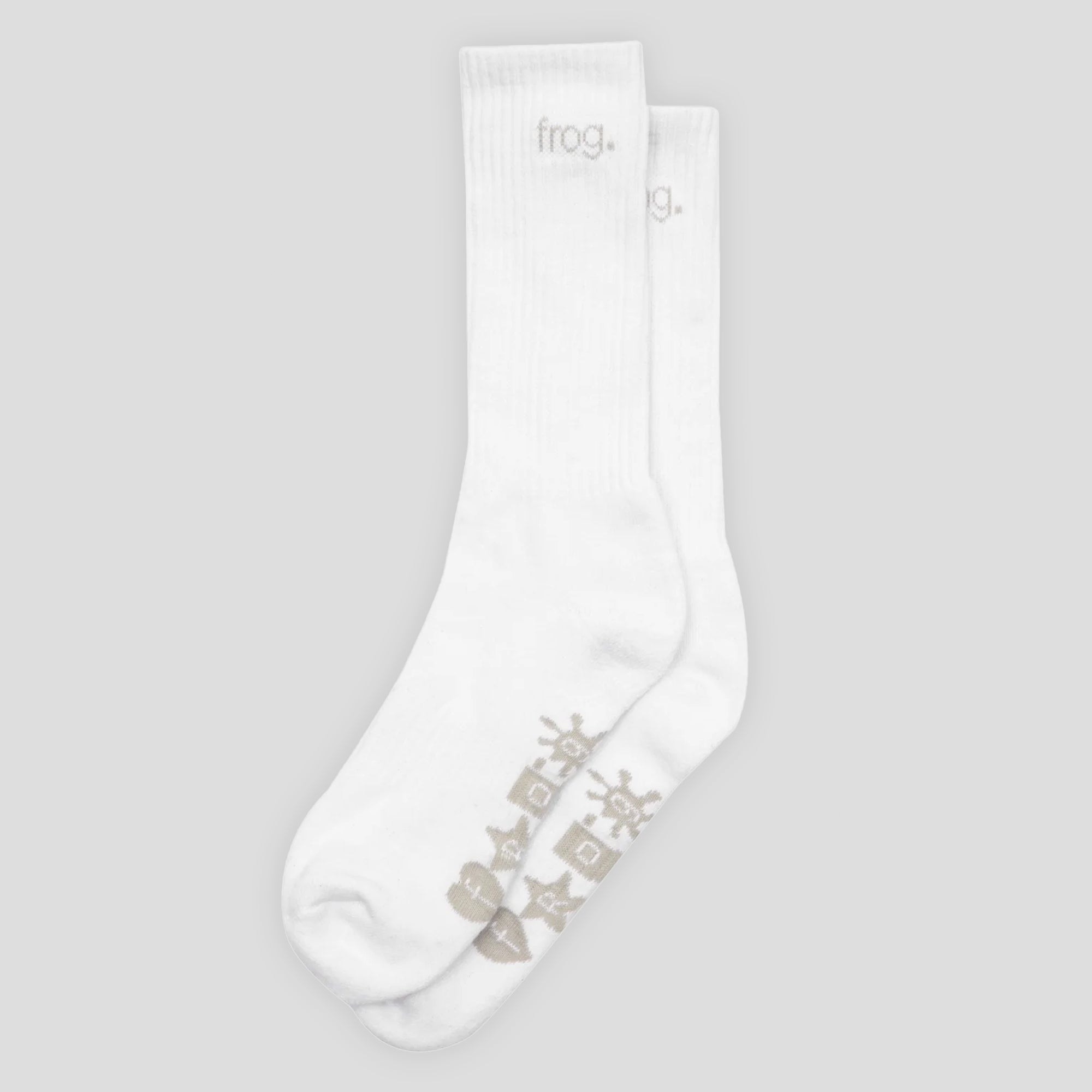 LA based label Frog Skateboards offers their new range to Pass~Port Store & Gallery. The Frog socks are made from a cotton, poly, spandex blend and feature a knitted logo on ankle and sole and come as a single pair.