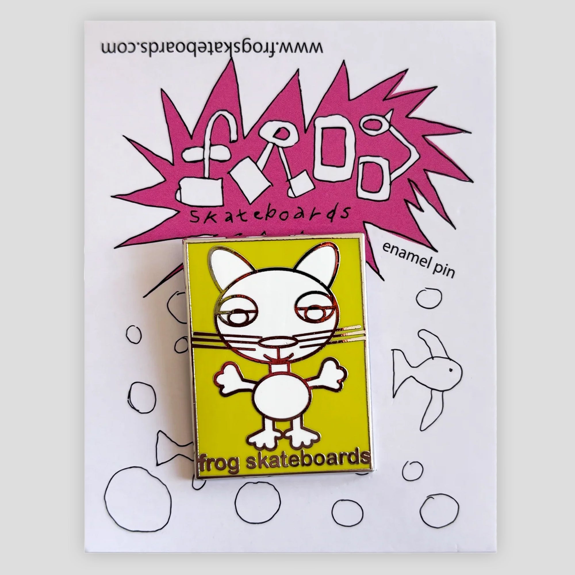 LA based label Frog Skateboards offers their new range to Pass~Port Store & Gallery. The Frog Yellow Cat Pin is made from hard enamel with a rubber stopper.