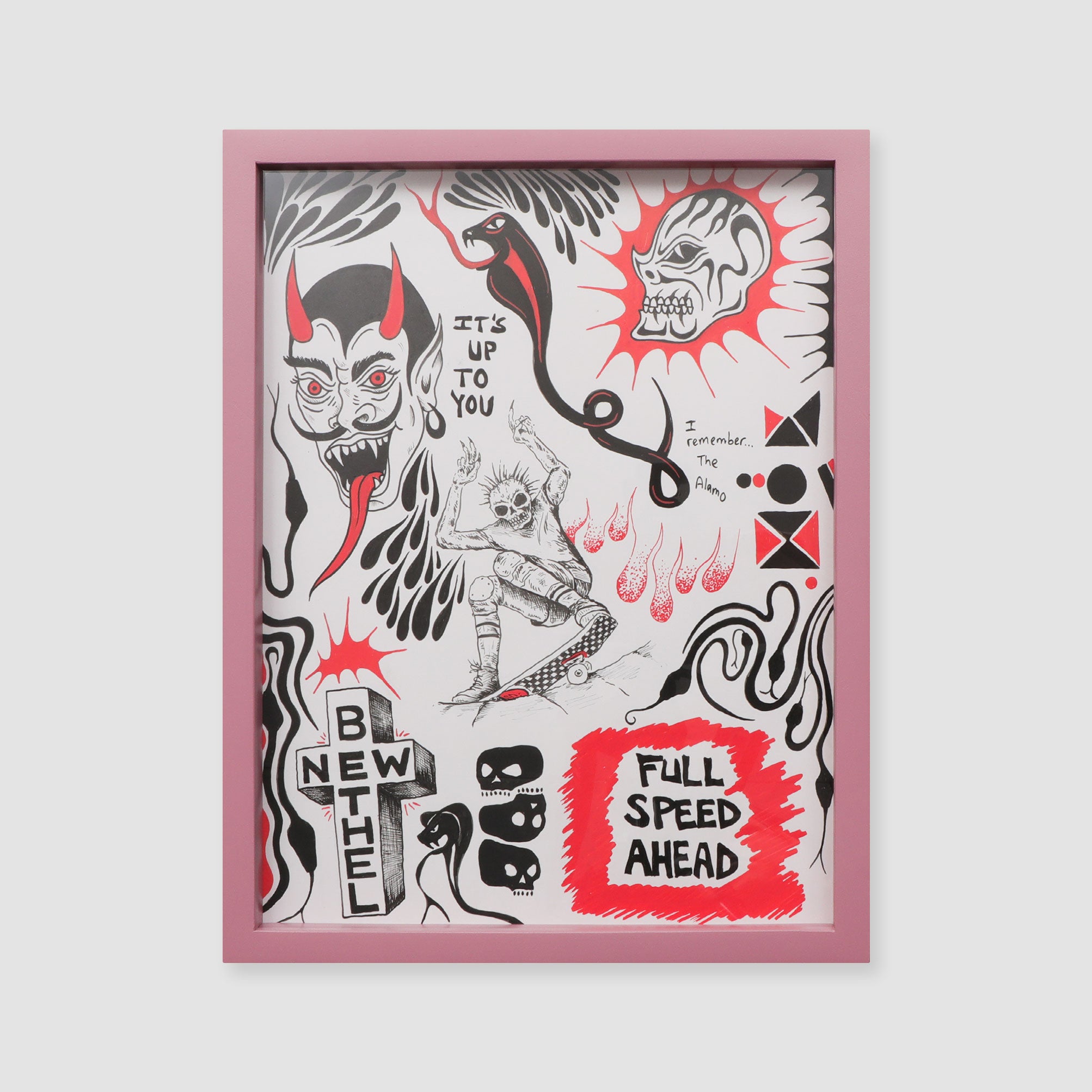 Each artwork has been hand-framed by Josh Pall, crafted to enhance the drawings and designed as a work of art in its own right.