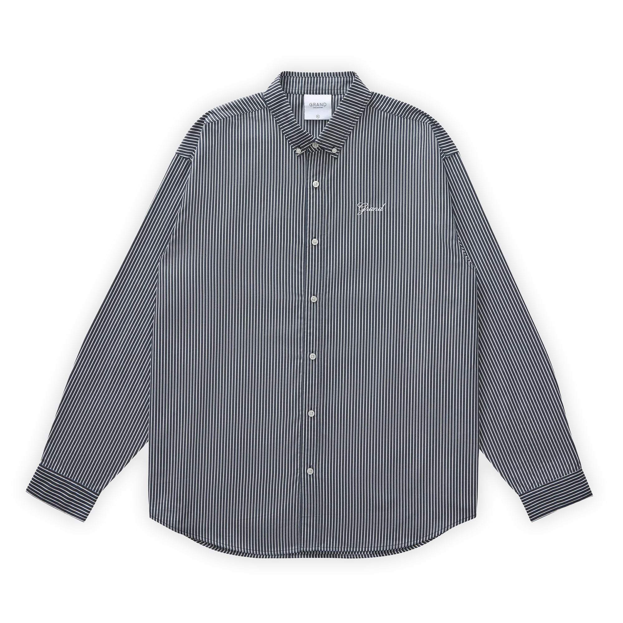 Grand Collection Blair Striped Poplin Shirt - Navy