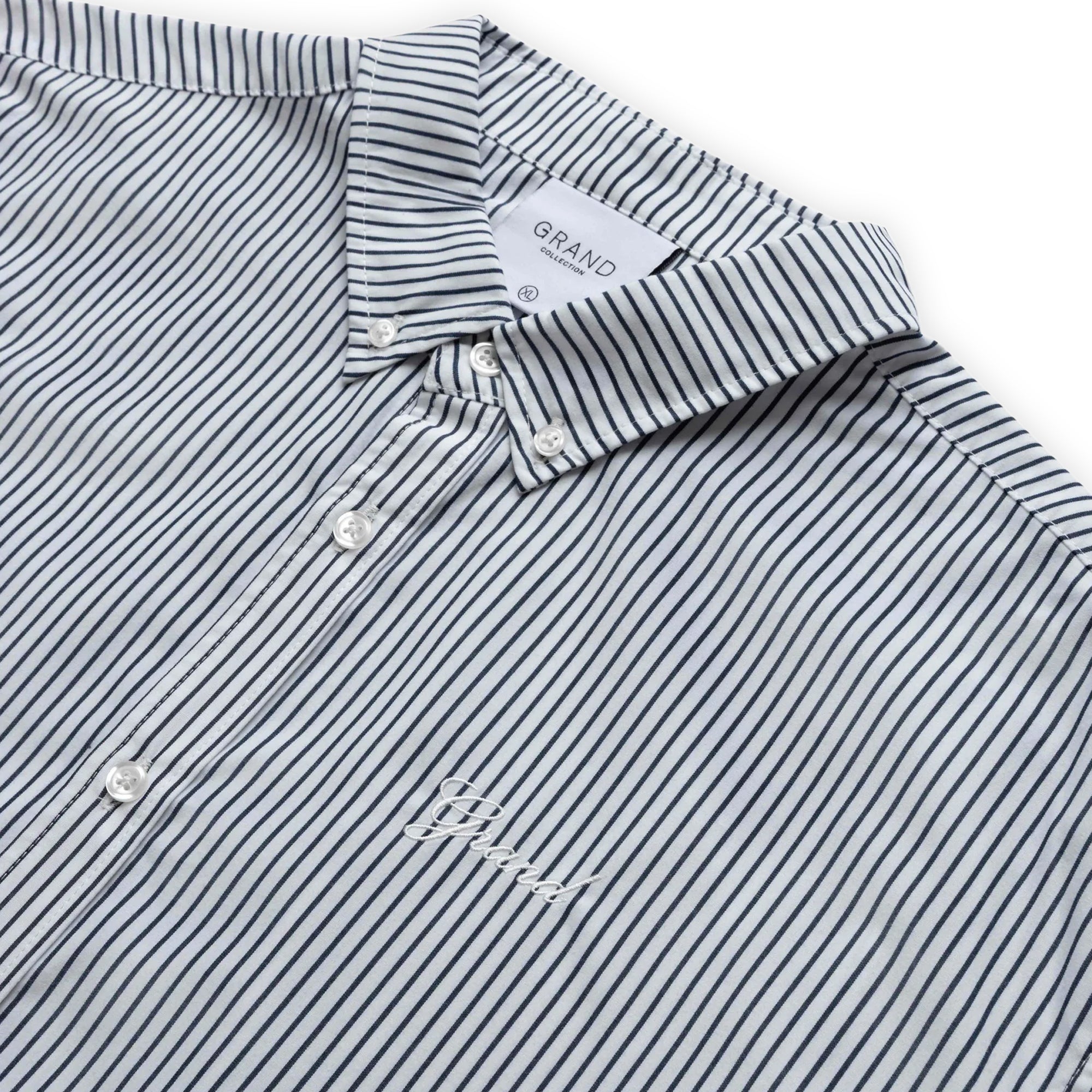 The Blair Striped Poplin Shirt is made from 100% Cotton and features a minimal embroidered logo and mother of pearl buttons at front, collar and cuffs.