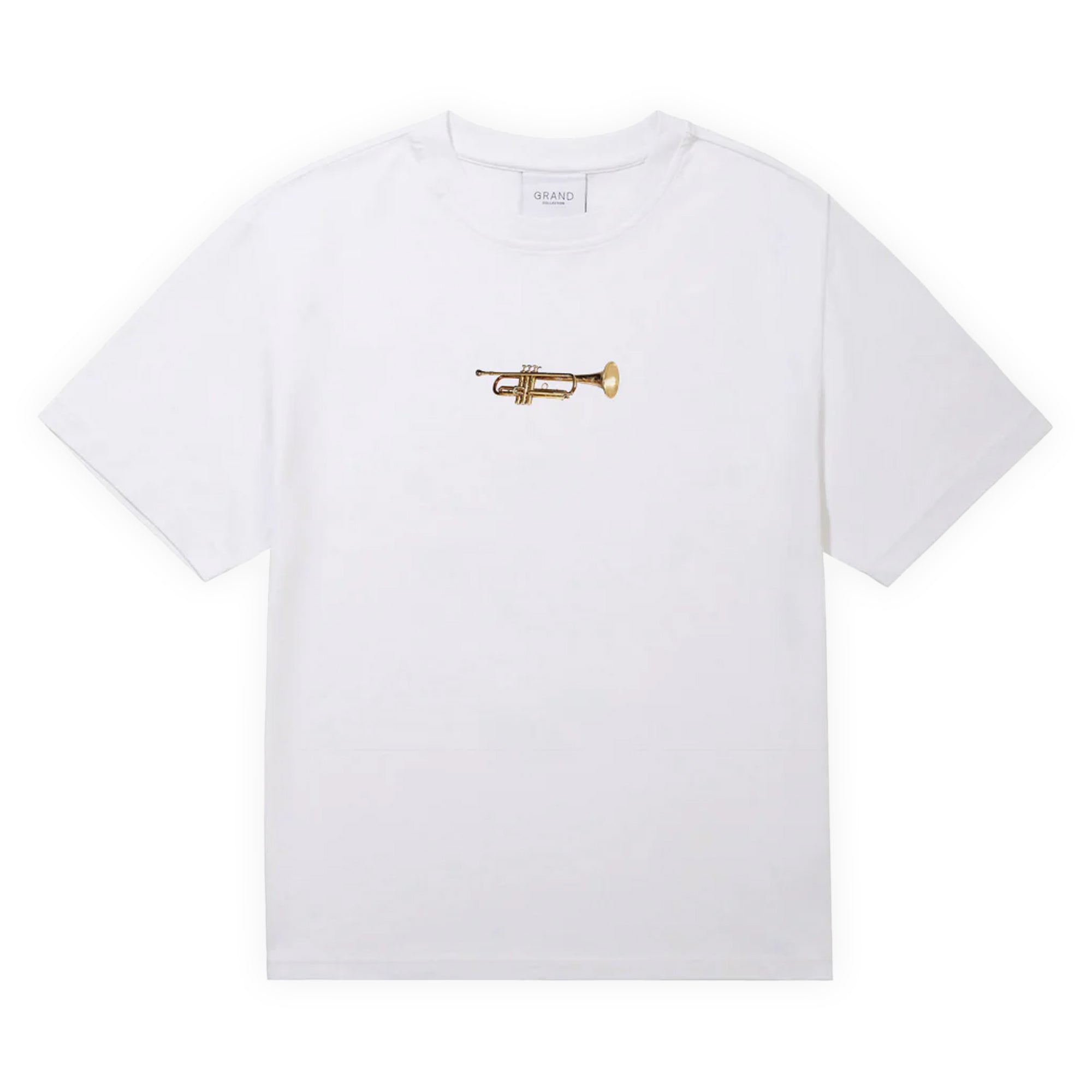 The Trumpets Tee is made from 100% Jersey Cotton and features a printed graphic and ribbed collar.