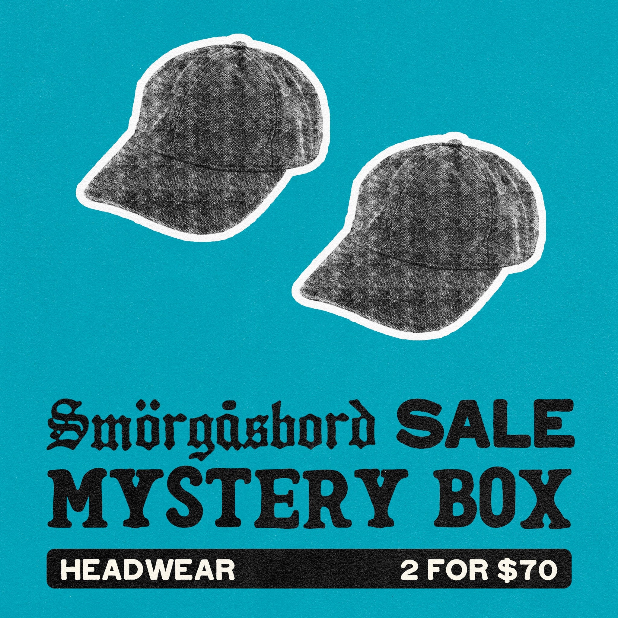 Mystery Box Deal — 2025 Online Smorgasbord Sale: Each mystery box includes 2 randomly selected items of headwear; cap, beanie or bucket hat.
