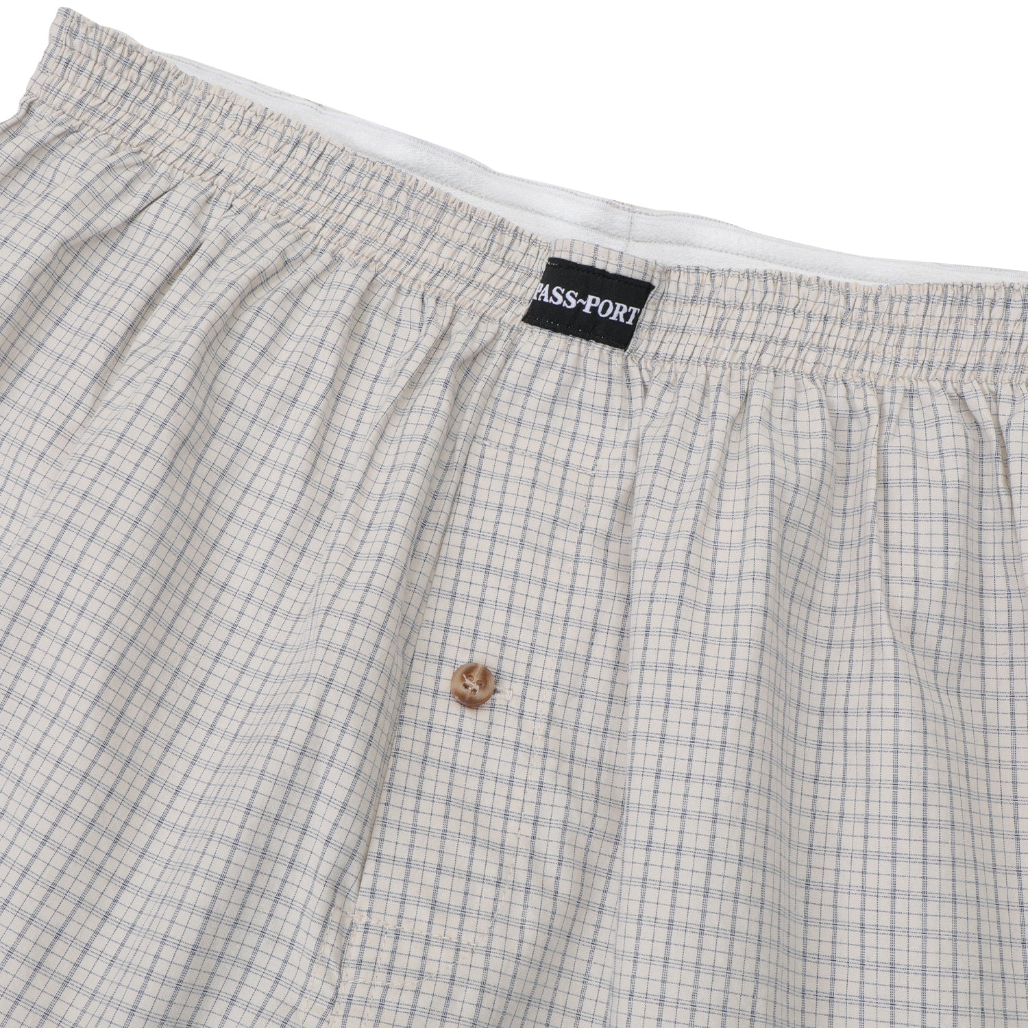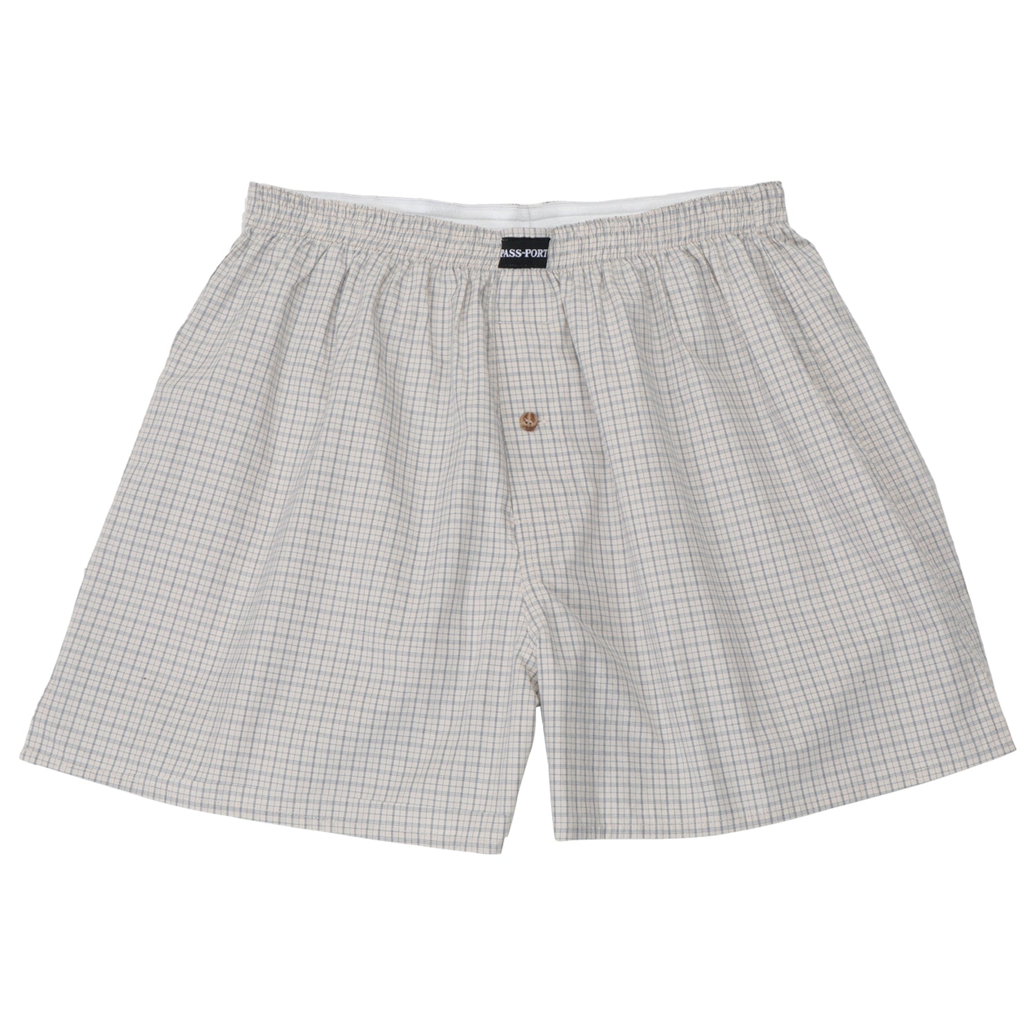 Introducing the Pass~Port Boxer Shorts in Blue from range #47. The boxer shorts are made from 100% lightweight cotton and feature an elastic waistband, woven label and recycled button.