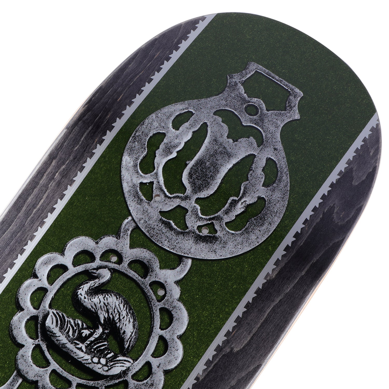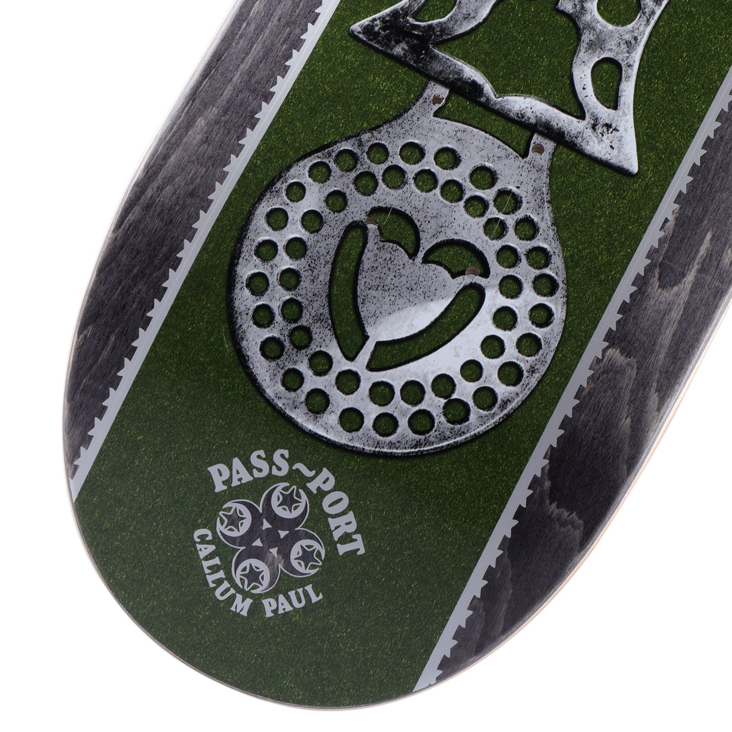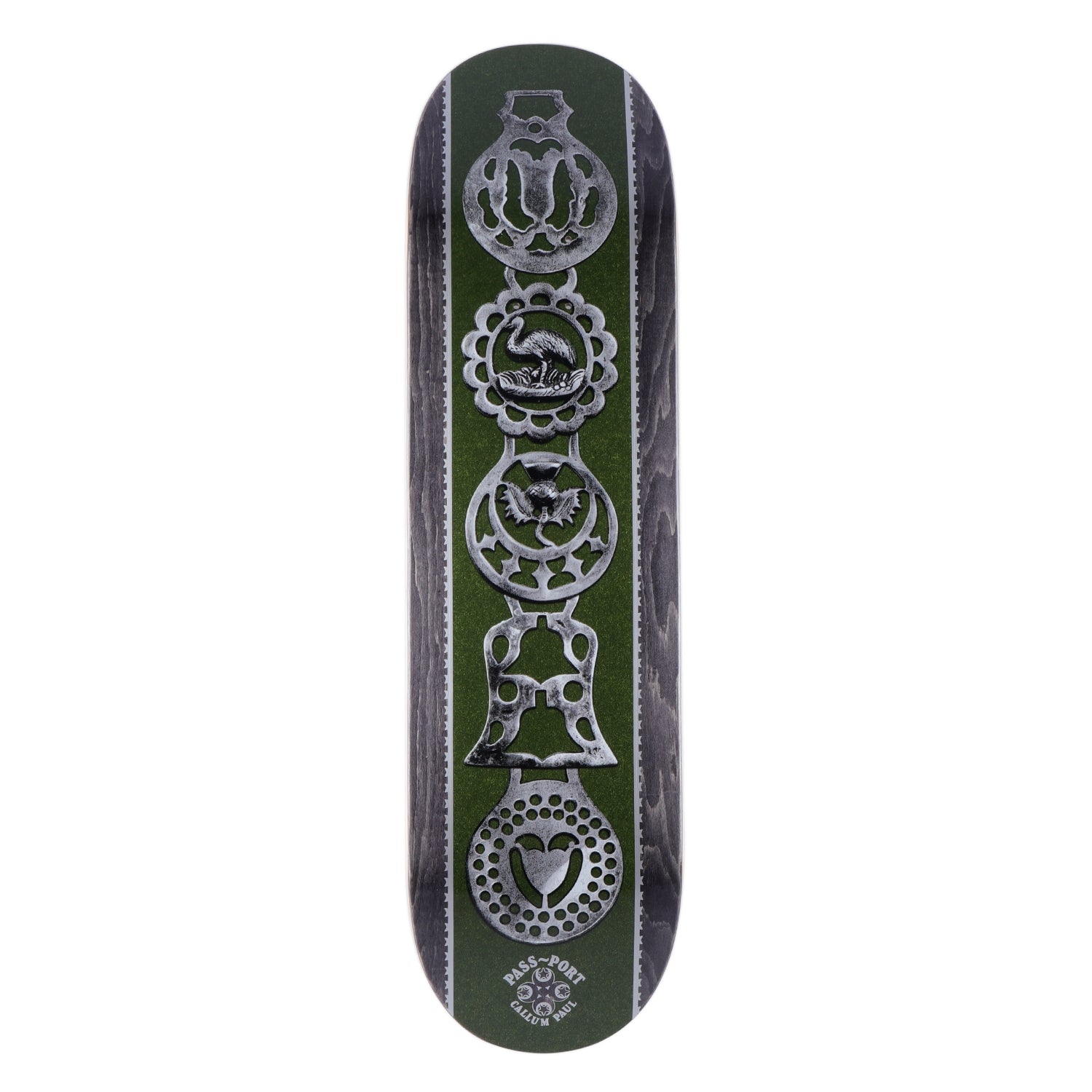 Pass~Port Brasses series is the pro series for range 47. Graphics inspired by decorative plaques to adorn your workhorse, featuring an ornamental selection of flora, fauna & pattern expertly arranged. The deck is cut and pressed to the classic Pass~Port shape. The board features full concave medium kick shape and is pressed in Mexico with premium-quality materials.