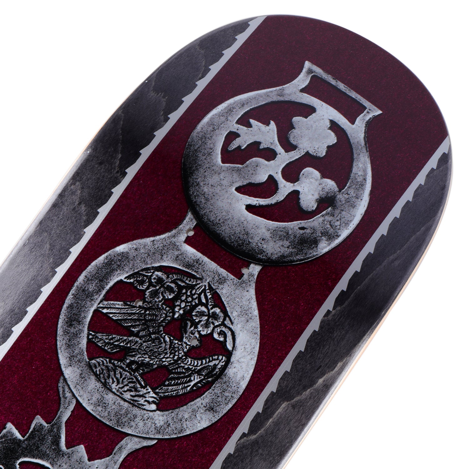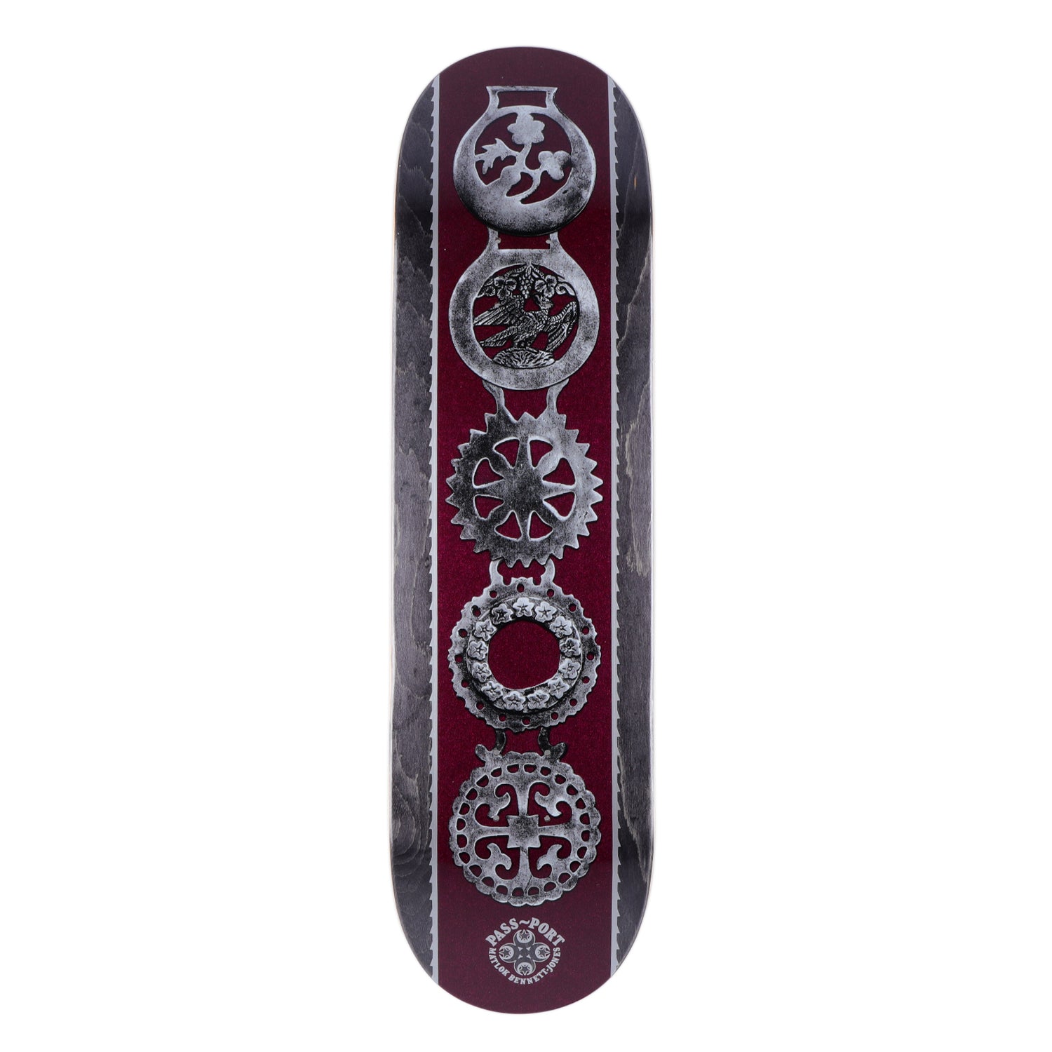 Pass~Port Brasses series is the pro series for range 47. Graphics inspired by decorative plaques to adorn your workhorse, featuring an ornamental selection of flora, fauna & pattern expertly arranged. The deck is cut and pressed to the classic Pass~Port shape. The board features full concave medium kick shape and is pressed in Mexico with premium-quality materials.