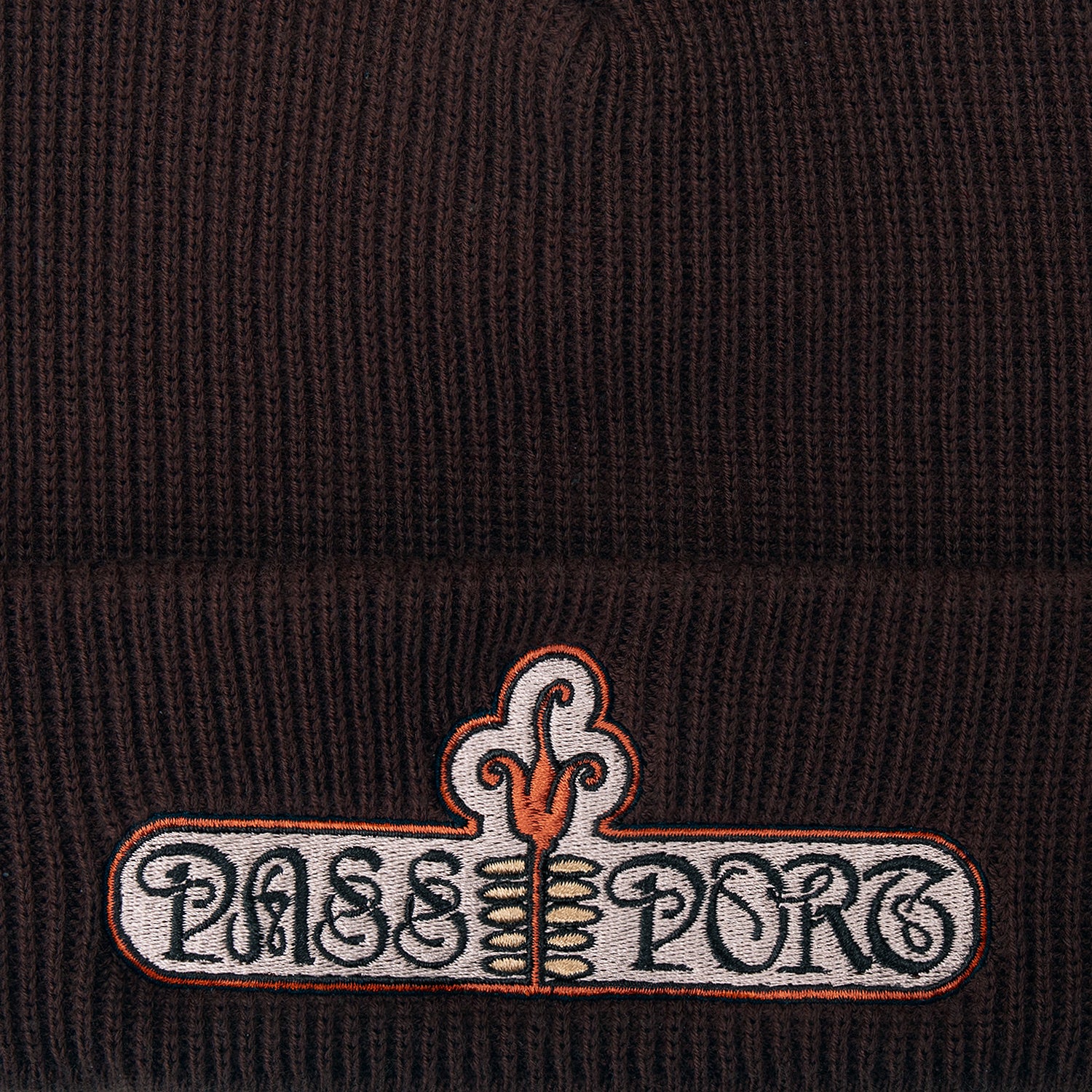 Pass~Port Gardenia beanie from range #44. The Pass~Port beanie is made from 100% cotton and features direct embroidery on the front which is finished in the classic Pass~Port beanie fit.