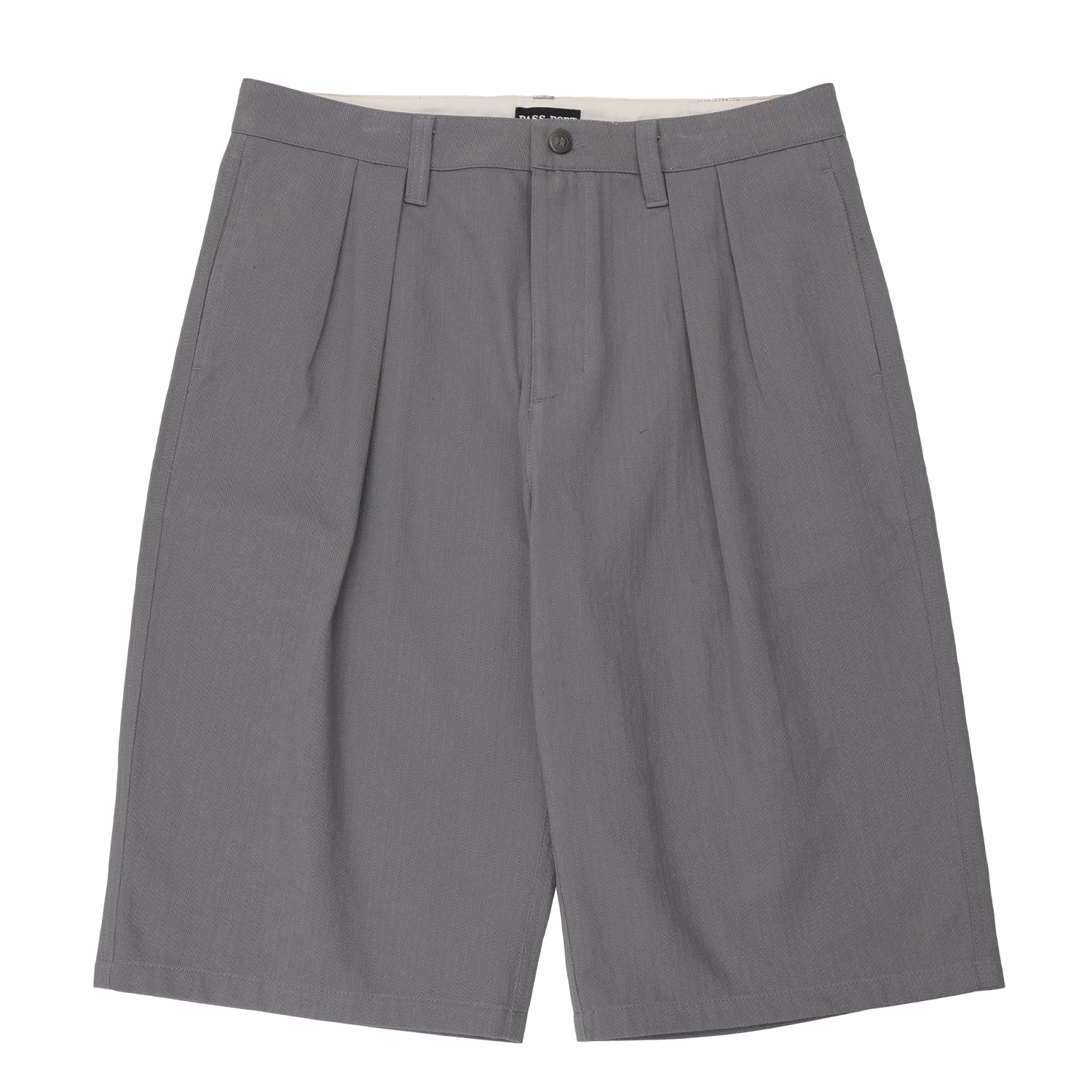 Pass~Port Leagues Club shorts in Grey from range #47. The Leagues club short is made from 100% cotton herringbone and features double pleats, woven label on waistband and custom button.
