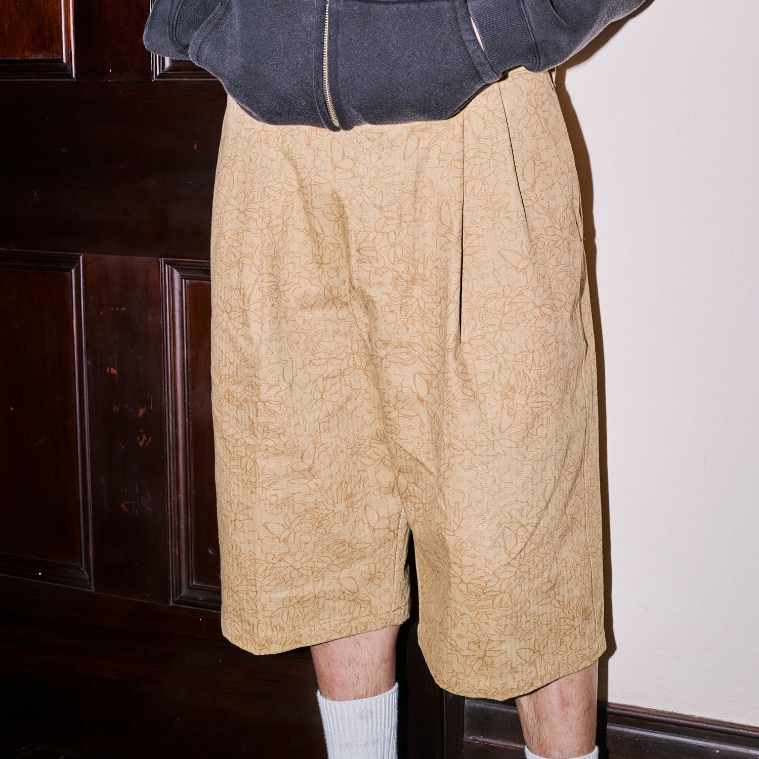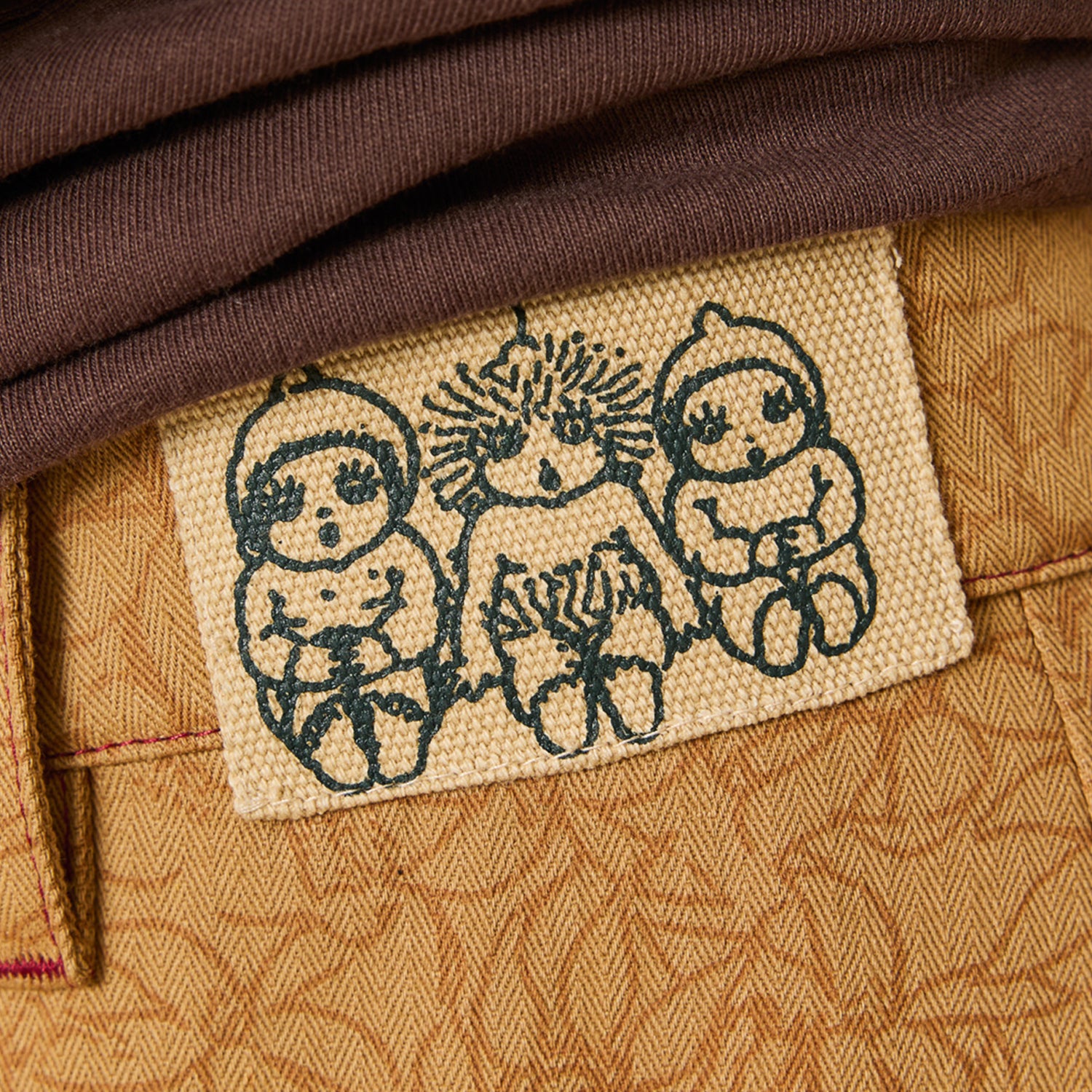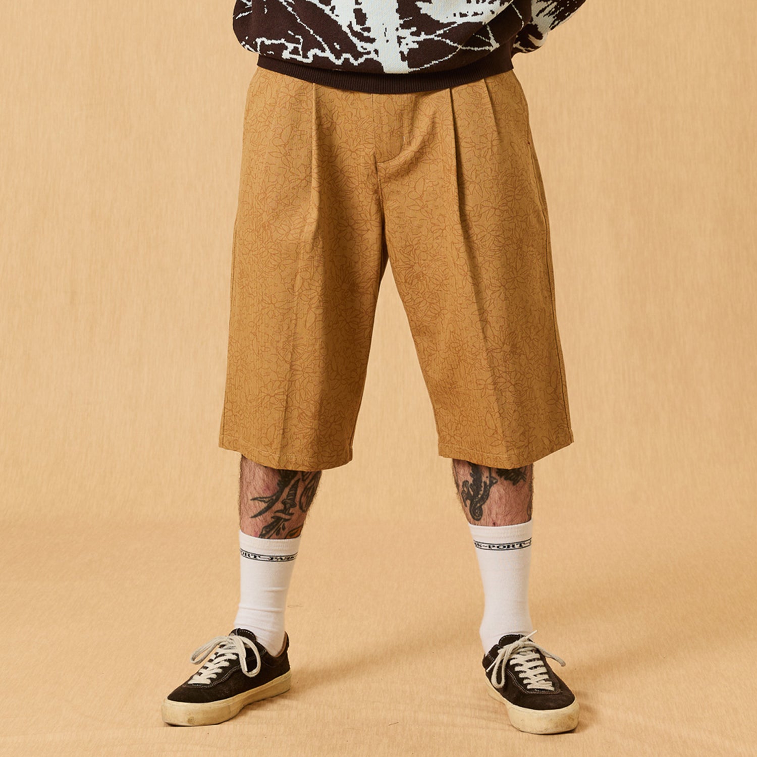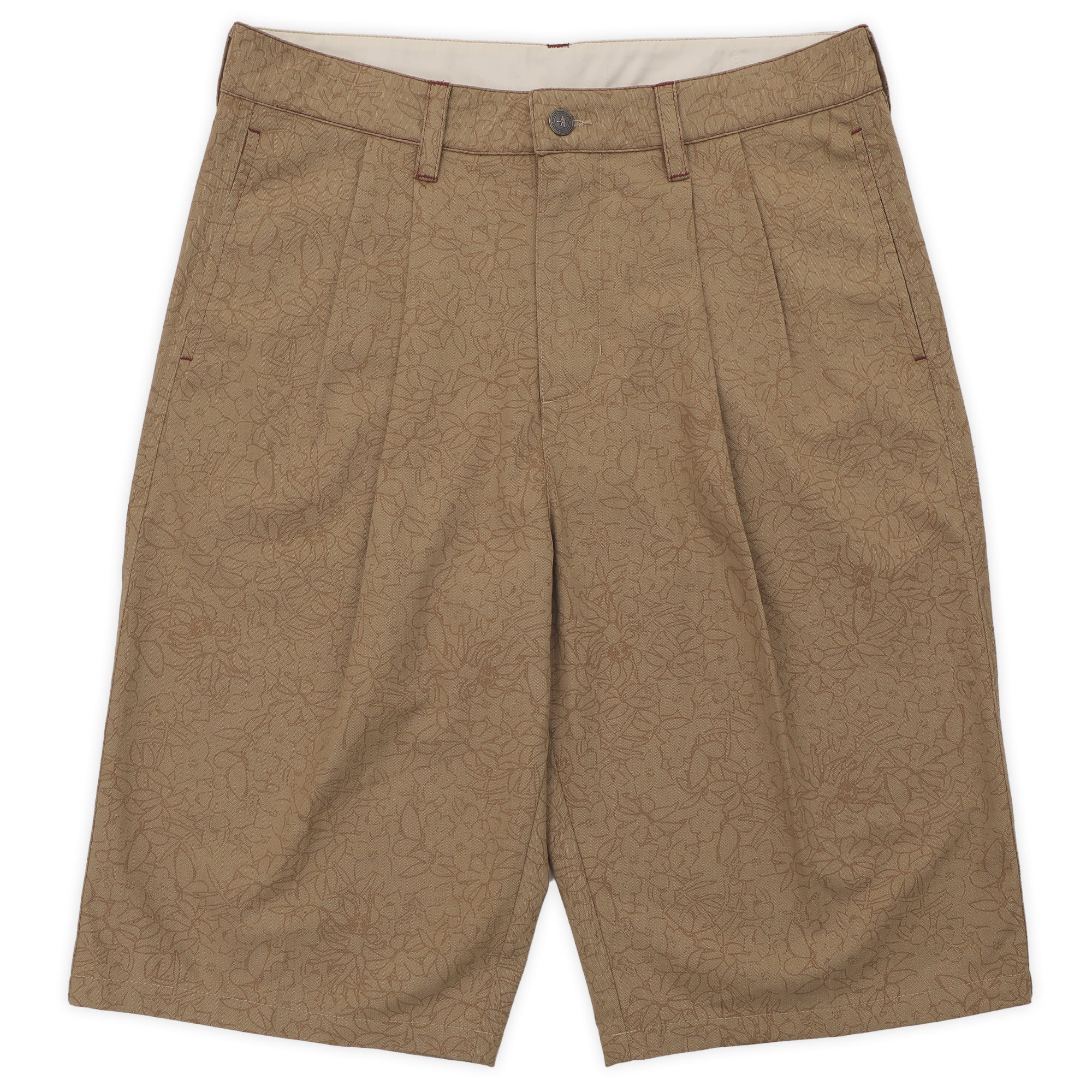 The Scribblegum Leagues Club Short in Khaki are made from 100% cotton herringbone and features double pleats, custom button, canvas rear patch, waistband embroidery and finished in an all over print.