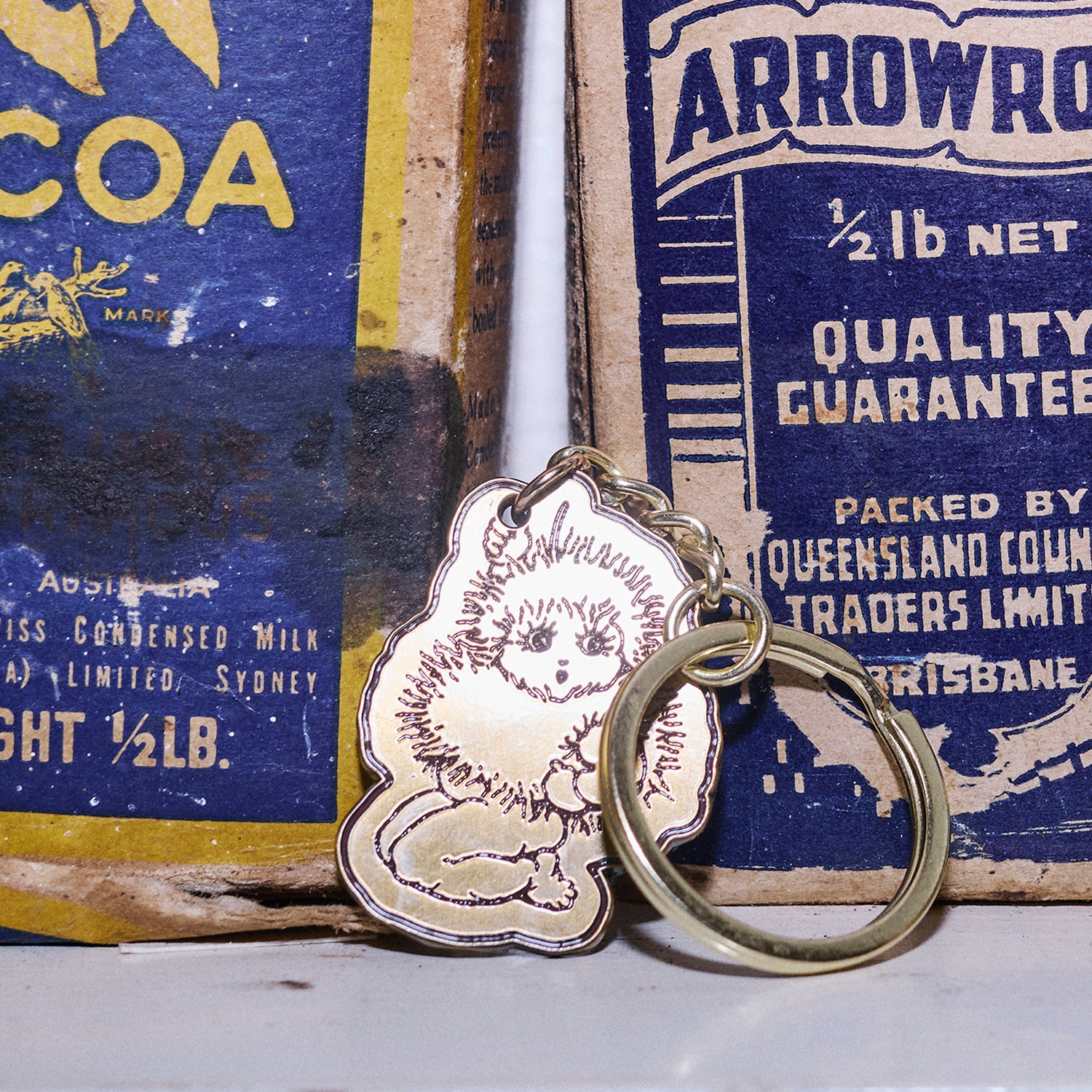 The Wattle Baby Keyring is part of the Pass~Port & May Gibbs kitsch collection. Made from die-struck metal with O-ring attachment.