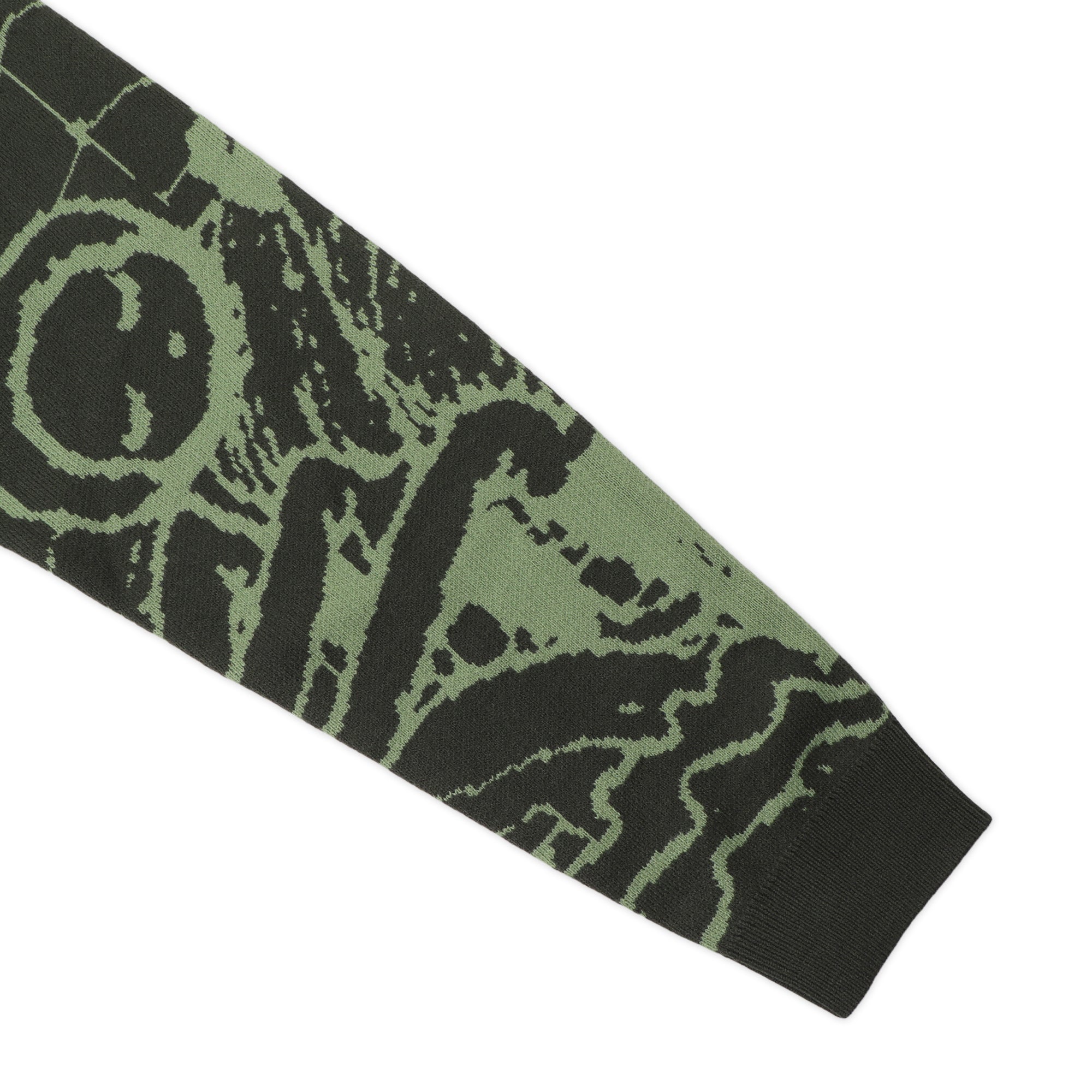 The Webbed Bed Knit Sweater in Gumnut Green is an acrylic knit featuring cuffed sleeves and bottom and an all over jacquard pattern.