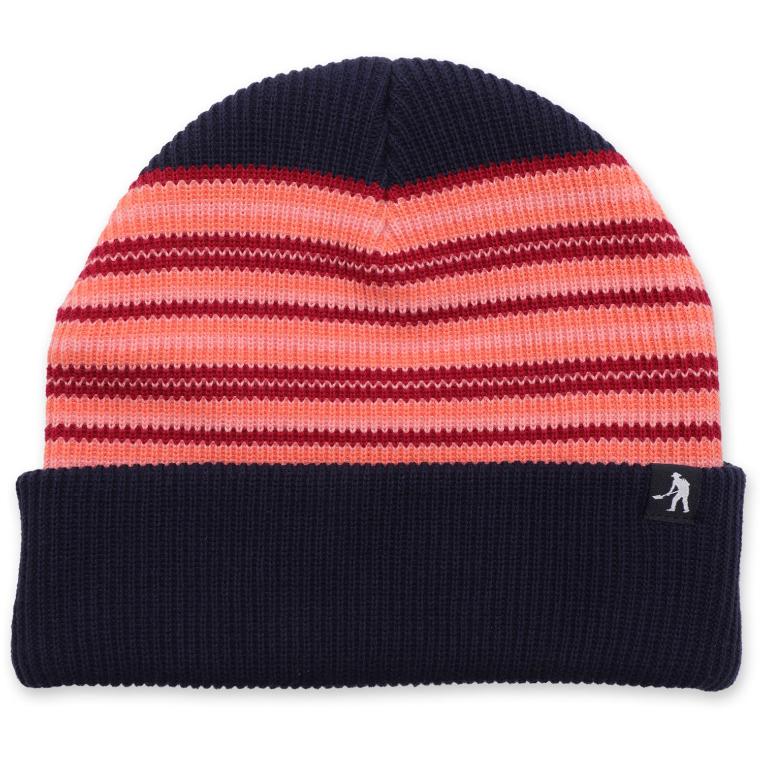 Pass~Port Organic Cotton Stripe Beanie in Navy from range #47. The Pass~Port beanie is made from 100% organic cotton yarn and features woven digger pip on the front and finished in the classic Pass~Port beanie fit with a jacquard striped pattern.
