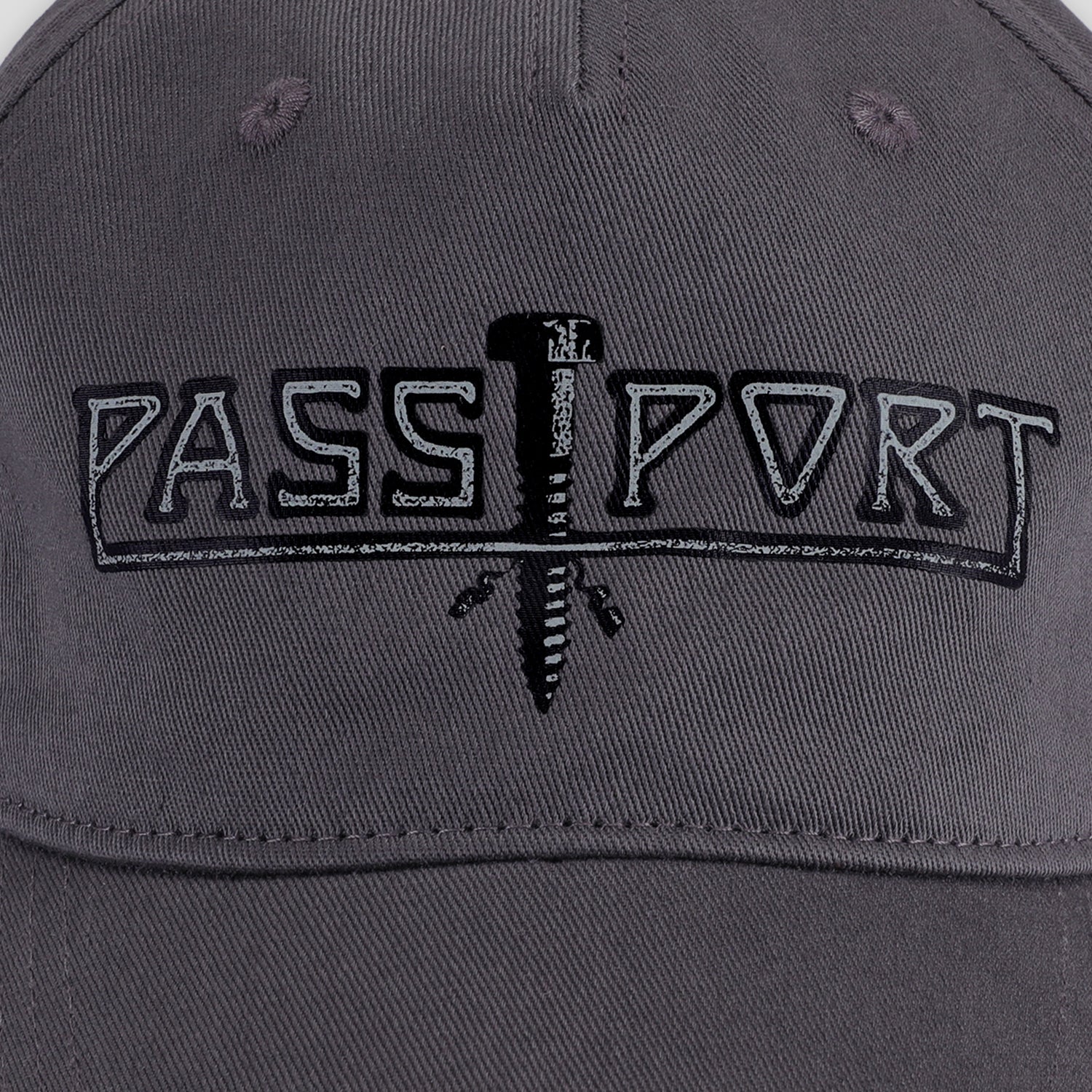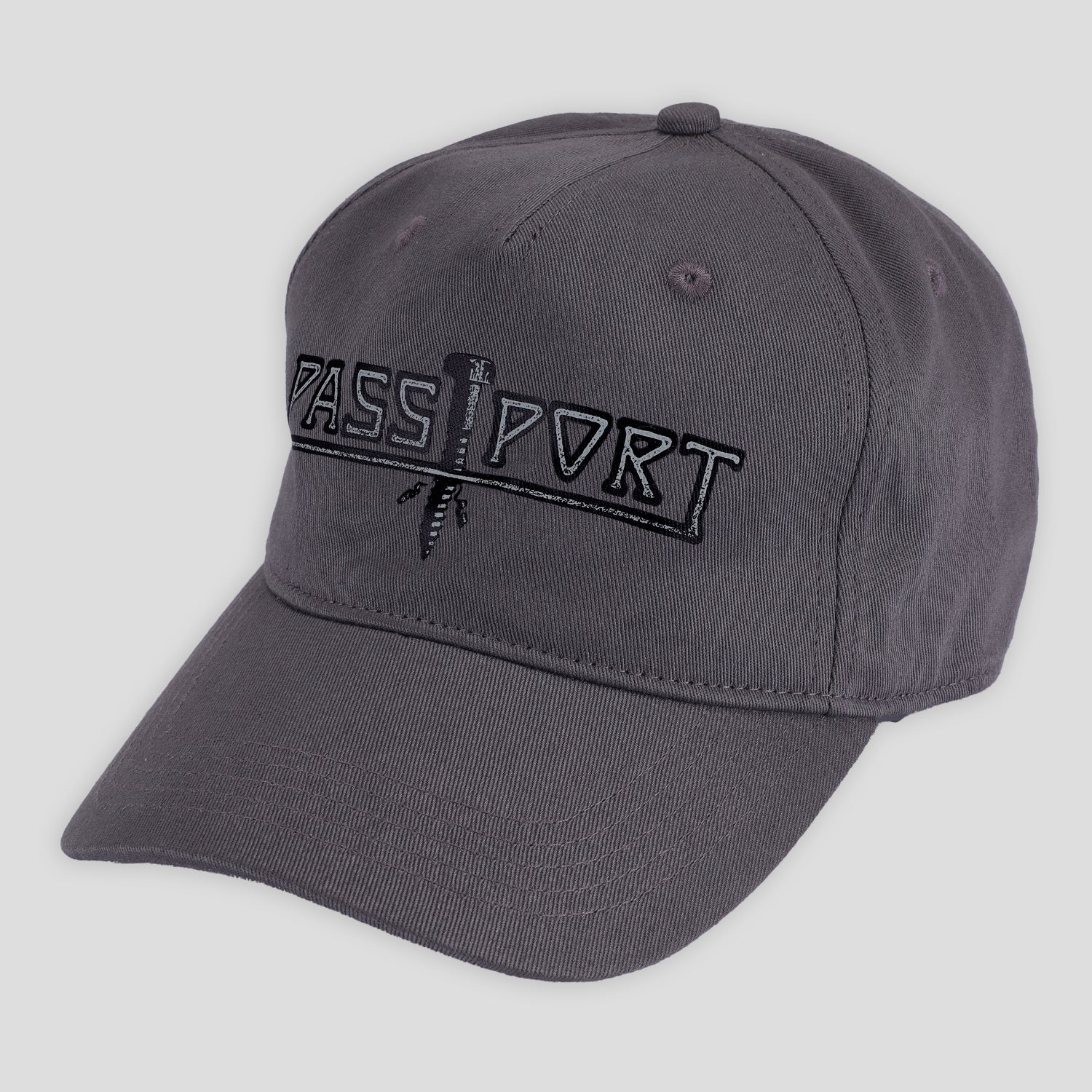 Pass~Port Screwed packers cap from range #44. The Pass~Port hat is a 5 panel construction made from 100% cotton twill and features screen print on front with adjustable strapback with brass buckle.