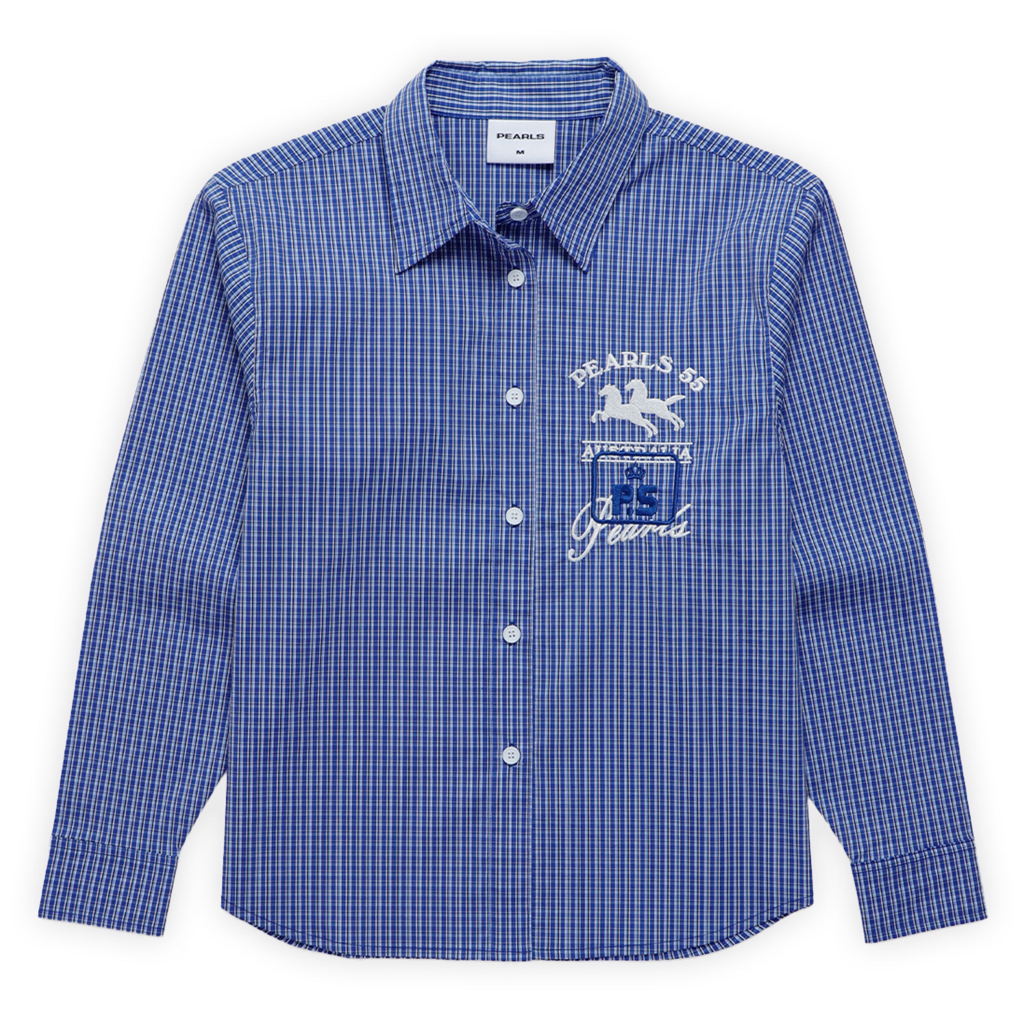 Melbourne based skate brand Pearls Skateboards presents range 11 to Pass~Port Store & Gallery. The Saddle Shirt in Blue Check is made from cotton, nylon, spandex blend and features an embroidered graphic on left chest with front button closure.